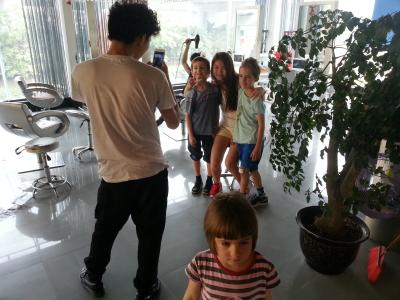 Die ganze Woche gingen wir in die Schule. Wir hatten zum ersten Mal mit Mischa Deutschunterricht! Das Schulhaus ist etwa 8x so gross wie jenes in Mittelhäusern. Es gehen 1000 Schüler hier in die Schule. Während der Pause können wir Fussballspielen. Doch es ist dort immer zu voll und es spielen etwa 10 Mannschaften mit 8 Bällen gleichzeitig. Es hat auf dem Pausenplatz auch ein Kletterschiff und Ping Pong-Tische. Die Schläger muss man aber selber mitbringen.