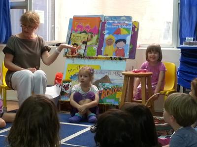 Ich bin schon allein mit Lenz und Wanja im Schulbus gefahren. Miss Helmy ist meine Kindergärtnerin, sie ist eine gute Lehrerin. Ich verstehe noch nicht so viel. Ich habe es dort sehr gemütlich, das Essen finde ich auch gut. Wir sitzen manchmal auf einem Teppich und Miss Helmy erzählt uns ein Buch.